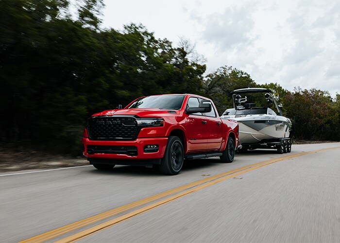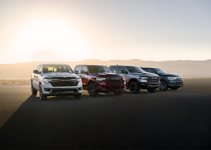 Enjoy exploring the outdoors or conquering trails in the hill country? Ram 1500 trucks are available in the trail-ready Warlock trim with 33-inch all-terrain tires, e-locker rear axle, underbody skid plates, and a 1.0-inch raised suspension system. Ram 1500 models are also available in the Rebel® trim with 9.7 inches of ground clearance or the RHO that features a Bilsten® Black Hawk® e2 Shock System and 35-inch all-terrain tires. While the Ram 2500 might not have the same off-road prowess as the Ram 1500, you'll still be able to explore trims like the Power Wagon® with a class-exclusive electronic locking front differential and electronic disconnecting front sway bar or the Rebel® with a rear e-locker differential and Bilstein® gas-charged shocks system that integrates perfectly with a five-link coil rear suspension system.