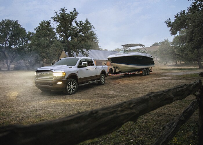 When it comes to working hard and playing harder, the Ram 1500 and Ram 2500 exceed expectations. Ram 1500 trucks offer up to 2,370 pounds of payload capacity with the 3.6-liter Pentastar® V6 engine or up to 11,550 pounds of towing capacity with the 3.0-liter Hurricane engine. In comparison, the Ram 2500 delivers true heavy-duty capability with up to 3,970 pounds of payload capacity using the 6.4-liter HEMI® V8 engine or up to 20,000 pounds of towing capacity with the available High-Output 6.7-liter Cummins® Turbo Diesel.